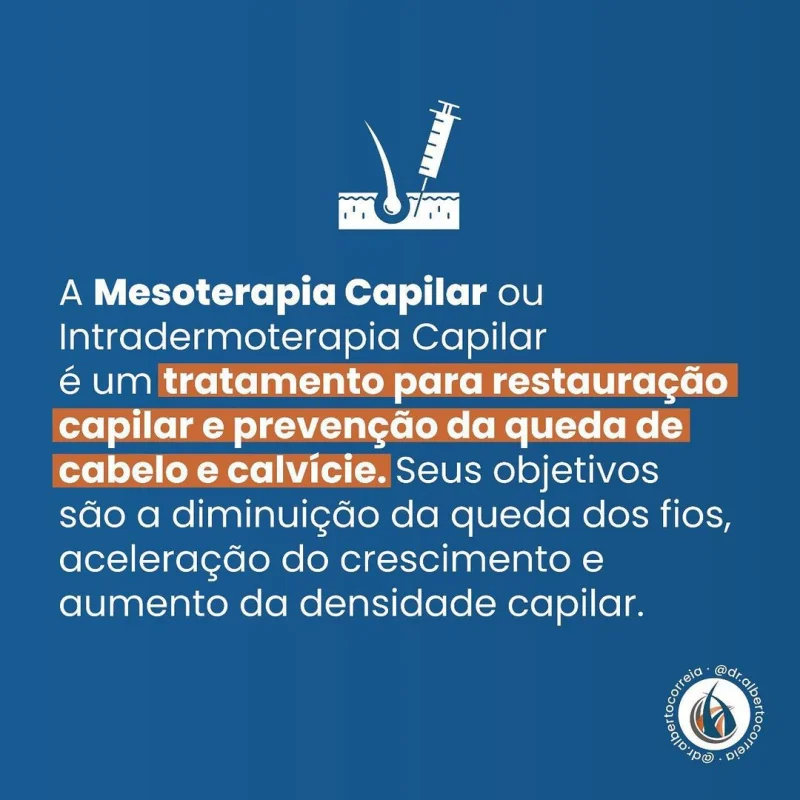 Saiba que no Dr. Alberto Correia - Transplante Capilar você encontra a solução que busca para intradermoterapia capilar preço. Aqui os clientes encontram itens como implante capilar e mesoterapia capilar.